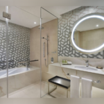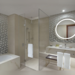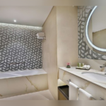 Luxury marble flooring and interior marble finishes for Hilton Panorama hotel suite in Doha with premium hospitality standards.